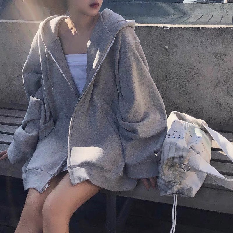(Video+Ảnh Thật) Áo Khoác Nỉ Khóa Zip Oversize- Hoodie dáng thụng form rộng dài tay, kiểu dáng basic, thiết kế trẻ trung
