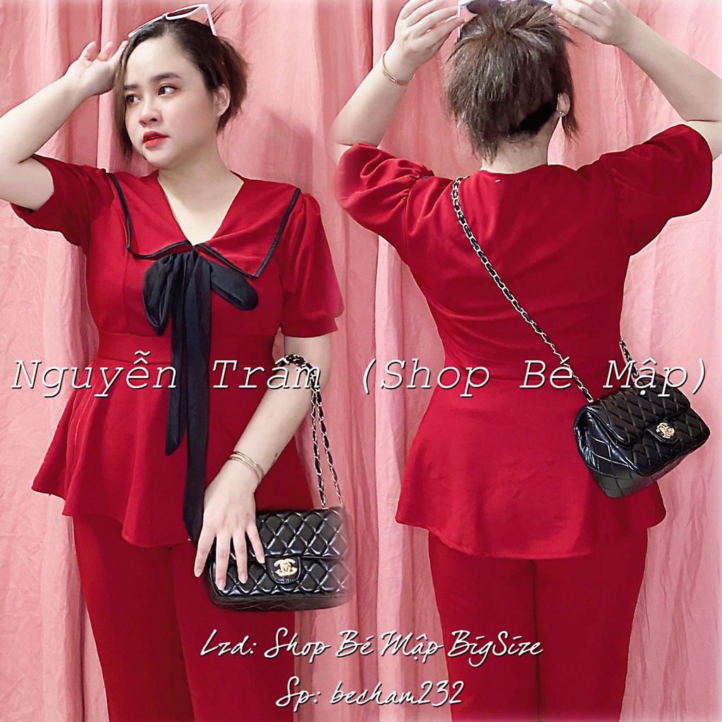 Set Áo Peplum Cổ Peter Viền Cột Nơ Quần Dài BigSize 65-85Kg [Hình Thật Chính Chủ] free ship